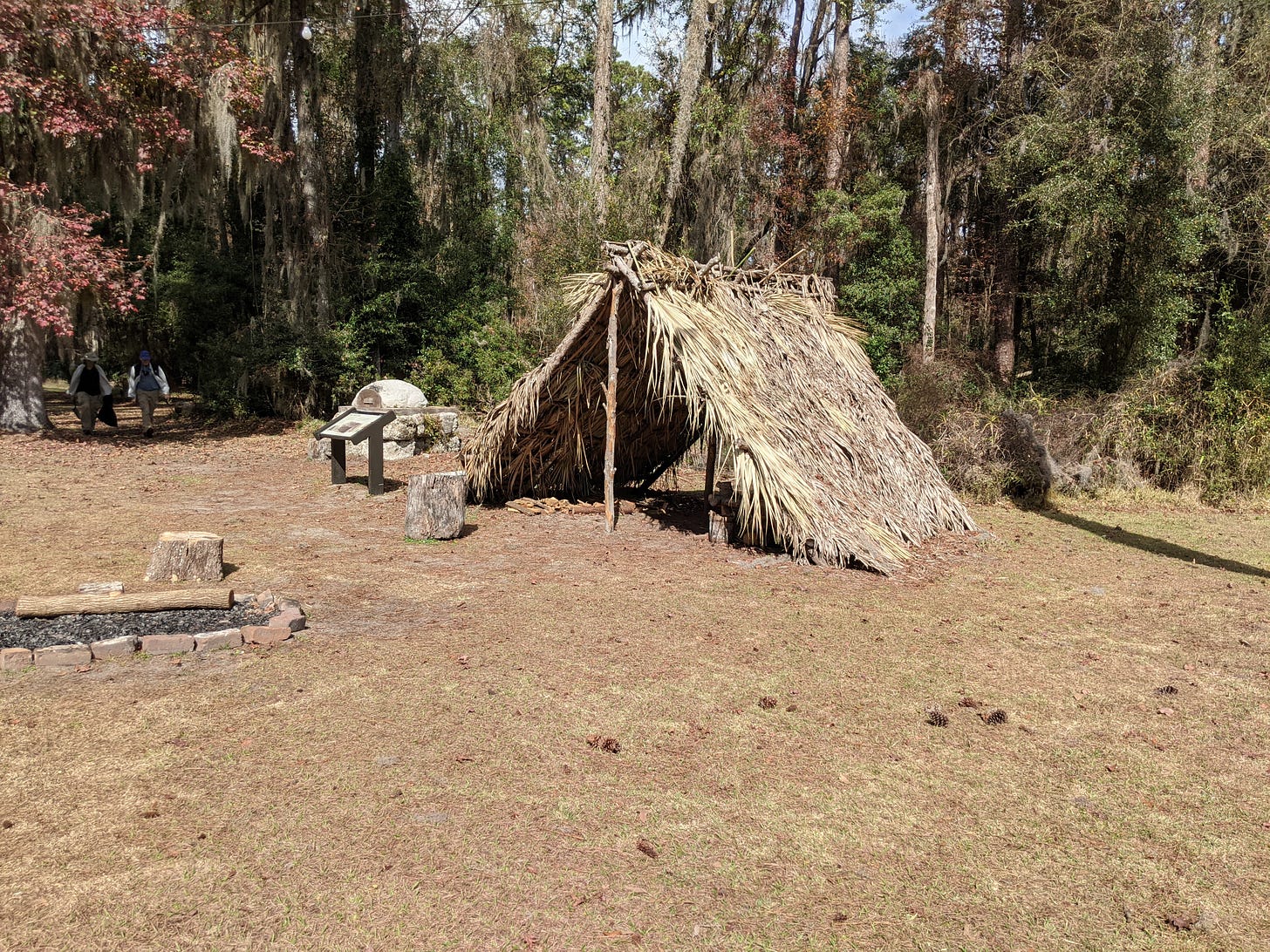 After lunch we stopped at the local fort ruins. This fort was built by the British. The Saint Augustine fort we had visited earlier was built by the Spanish. They both were operating at the same time in the late 1790’s. However, it was obvious the Spanish were superior in construction technique as well as military strategy. This is a reconstruction of the shelter used by the soldiers.