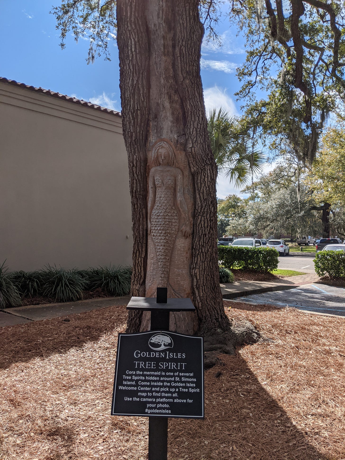 Saint Simon’s Island is known for the Tree Spirits. There is a local artist that carves images on trees. There is a walking tour in a marina district where you can visit five different tree spirits. There are almost twenty tree spirits sprinkled about the island.